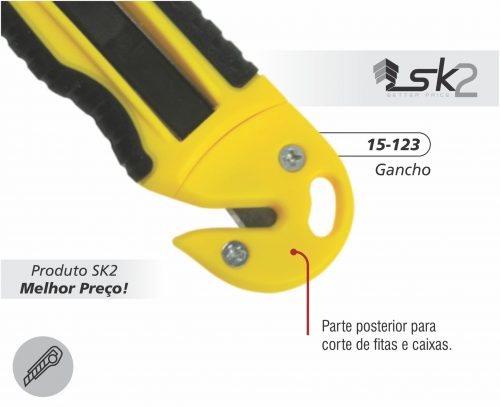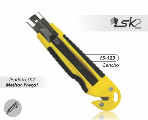 Estilete de segurança ergonômico com guias metálicas. Sistema de retração automática da lâmina.