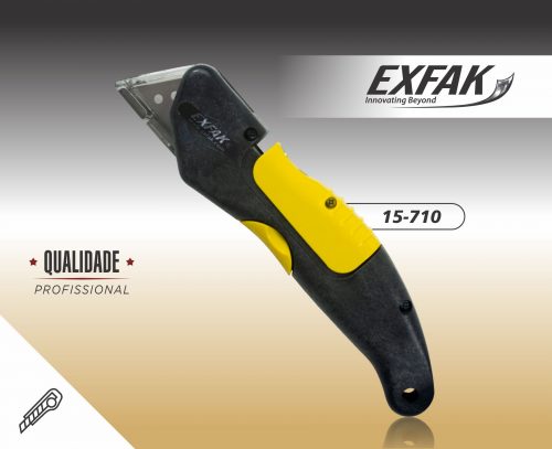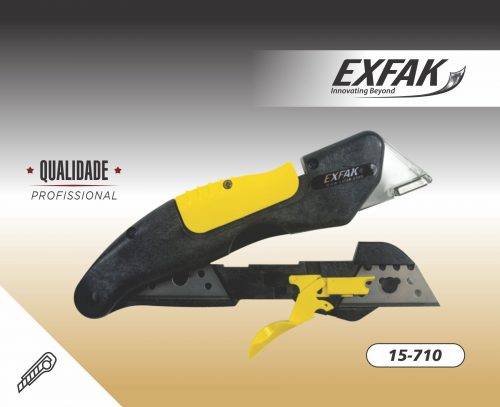 Estilete de segurança, moderno e resistente que possui compartimento para lâmina reserva.