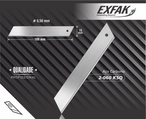 Lâmina 18mm, sem quebra, para estilete grande. Em aço carbono.