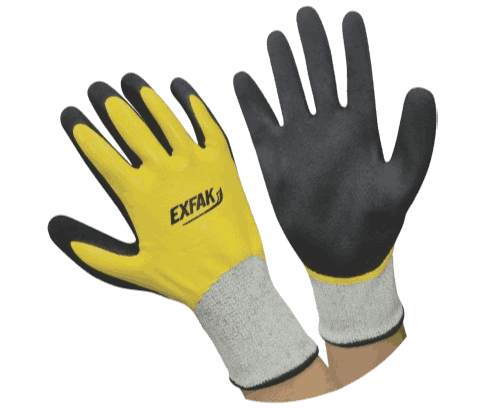 - Benefícios: Alta resistência a corte e agentes químicos. O seu banho nitrílico total impermeável em conjunto com a palma antiderrapante permitem o trabalho com óleos e graxas, além de maior aderência em trabalhos com manuseio de peças, chapas e lâminas cortantes. Possui resistência contra agentes químicos.