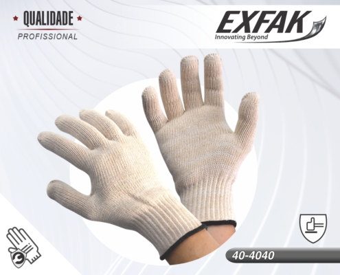 Luvas de algodão disponíveis com 3, 4 e 5 fios e punhos de 10 e 20 cm.