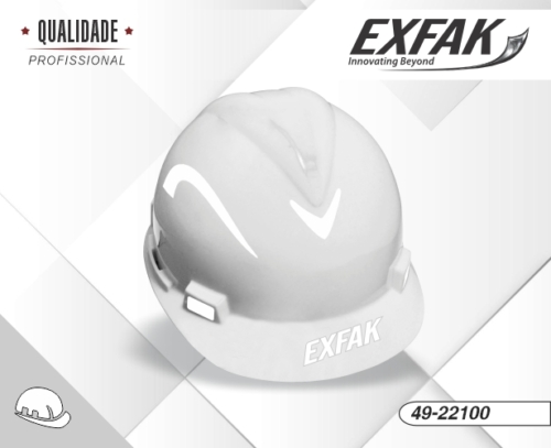 Capacete de segurança Tipo II, Classe B; Com aba frontal, casco em polietileno de alta densidade que protege a cabeça do usuário contra impactos de objetos sobre o crânio e contra choques elétricos; Cor: branco. CA 47.240