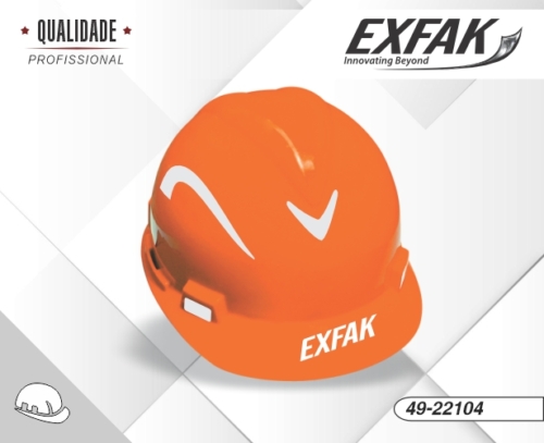 Capacete de segurança Tipo II, Classe B; Com aba frontal, casco em polietileno de alta densidade que protege a cabeça do usuário contra impactos de objetos sobre o crânio e contra choques elétricos; Cor: laranja. CA 47.240