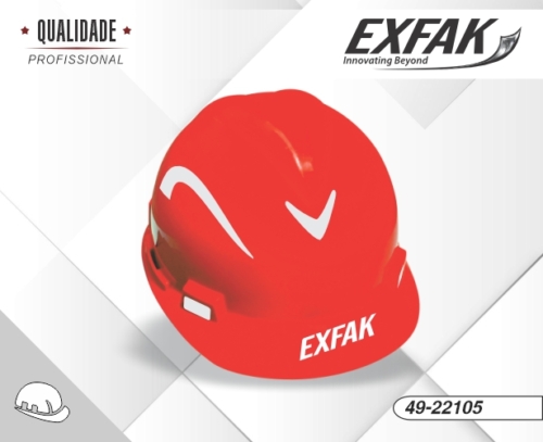 Capacete de segurança Tipo II, Classe B; Com aba frontal, casco em polietileno de alta densidade que protege a cabeça do usuário contra impactos de objetos sobre o crânio e contra choques elétricos; Cor: vermelho. CA 47.240