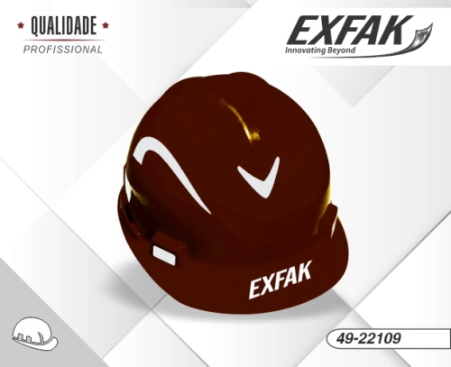Capacete de segurança Tipo II, Classe B; Com aba frontal, casco em polietileno de alta densidade que protege a cabeça do usuário contra impactos de objetos sobre o crânio e contra choques elétricos; Cor: marrom escuro. CA 47.240