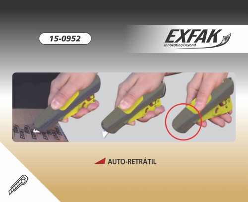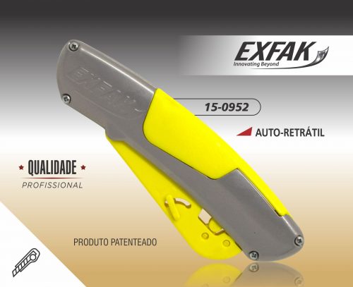 O estilete de segurança auto-retrátil 15-0952 Exfak é feito com material nobre, resistente. Possibilitando o usuário utilizar por muito mais tempo do que outros no mercado. Leve e ergonômico, dando boa destreza. Não oxida, não enferruja.